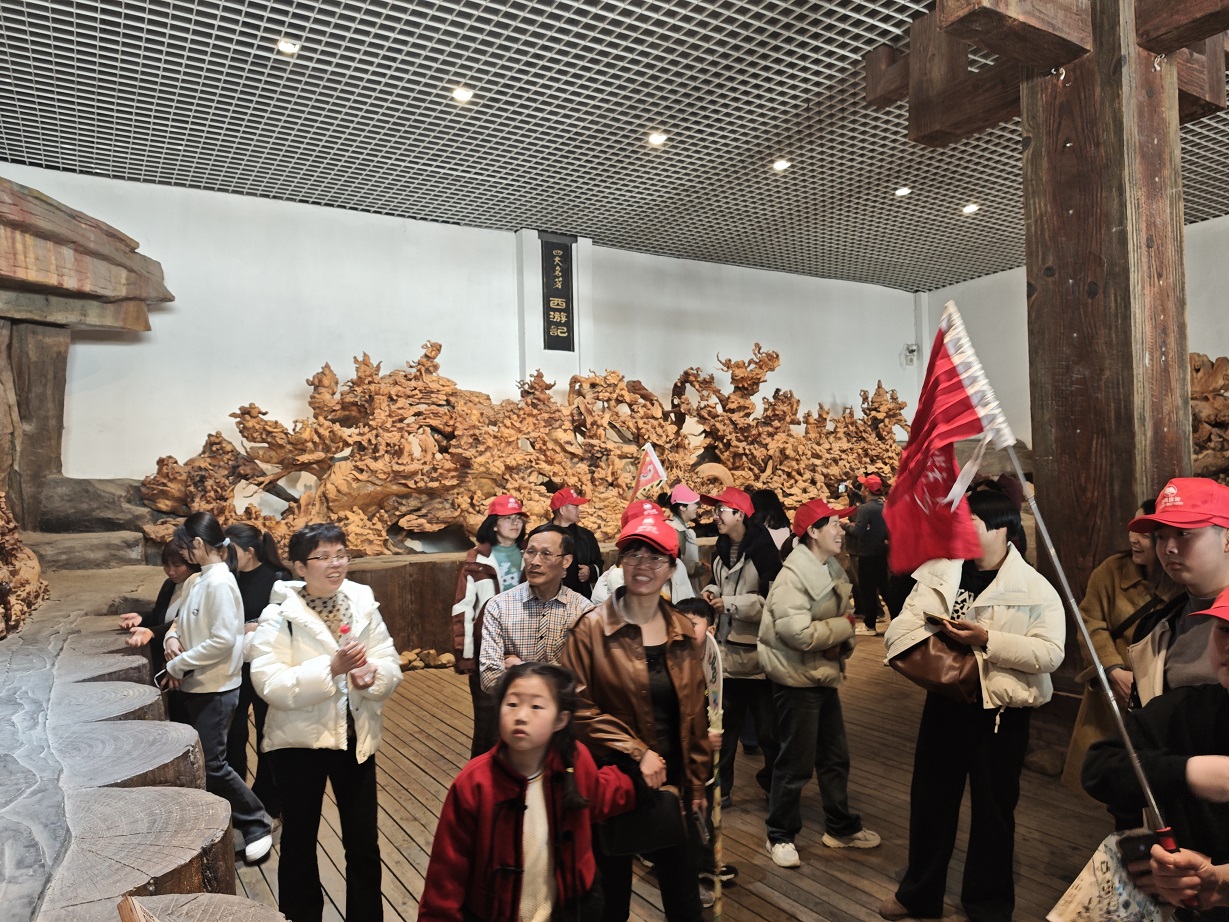 此次出游目的地為安徽太湖縣五千年文博園。抵達景區后,大家迫不及待地進入文博園,跟著導游的講解徜徉在五千年燦爛文化中:尋根問祖文化墻、摩崖瀑布、中華孝道園、中華漢字龍見證古典文化創意;“孔子列國行”、“老子天下第一”、“釋迦牟尼臥佛”見證儒、道、佛“三教并流”的和諧文化;1500米巨幅歷史長卷、秦始皇塑像群、茶馬古道,五千年根雕藝術館——上千件5噸重根雕讓大家感嘆化腐朽為神奇的根雕藝術,萬佛塔、華夏愛情文化園、中華百工坊、百年民俗館、四大名著文化園再現歷史文化的千年滄桑……一期、二期兩個園內景點錯落有致,它們濃縮著中華五千年文化的精髓,每一塊磚瓦、每一處雕刻,都仿佛在訴說著往昔的故事,吸引著大家紛紛駐足觀賞、拍照留念,活動在大家無數次的贊美中愉快結束!